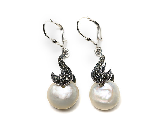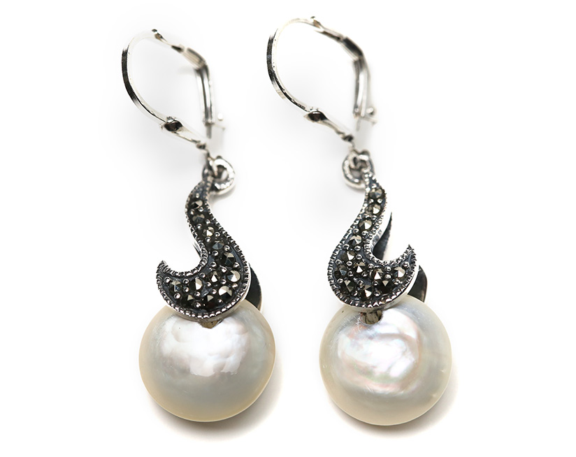 Beautiful Art Deco Style Lever Back Earrings In Marcasite & Sterling Silver.