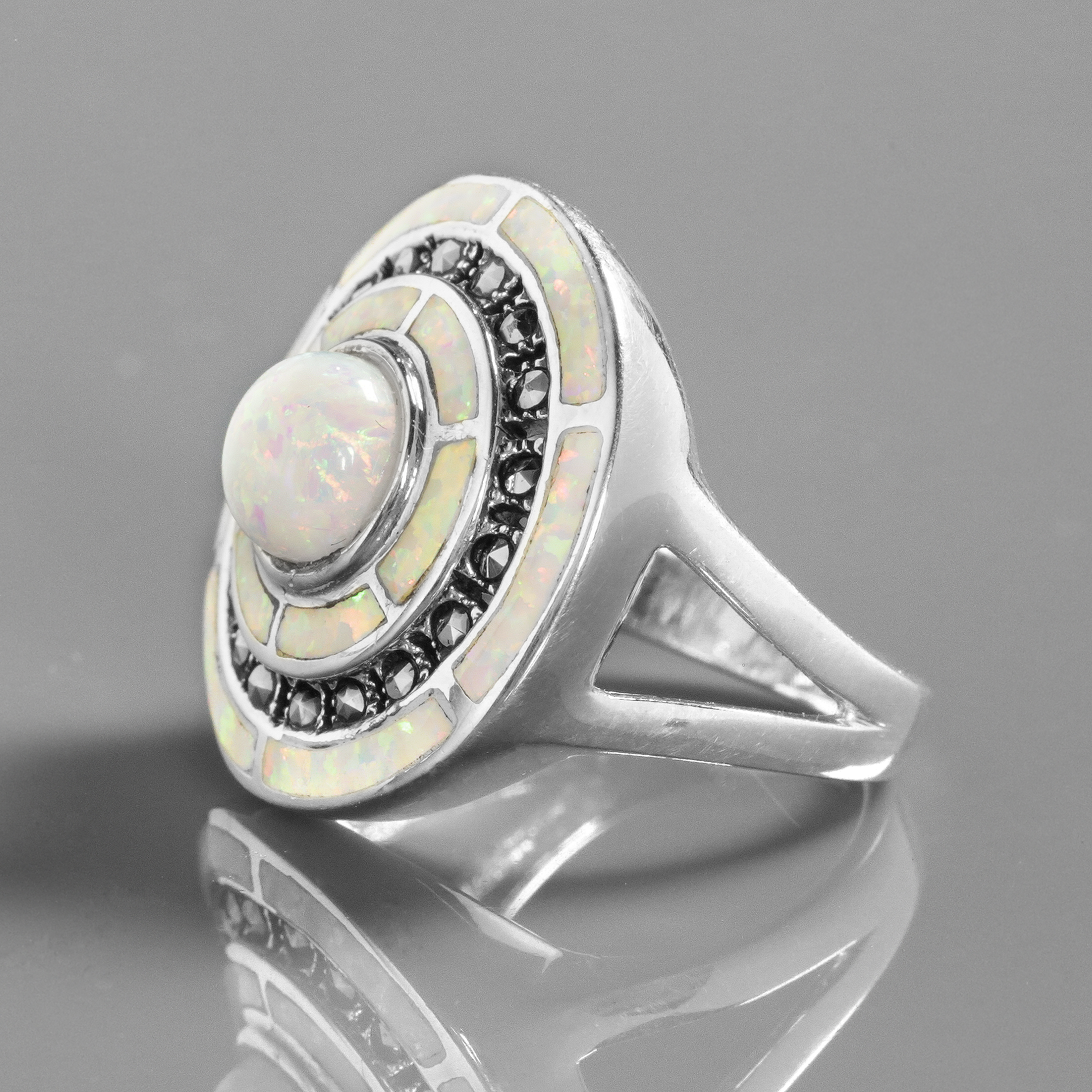 This beautiful ring is approximately 20mm in diameter and is also available in dark blue opal.