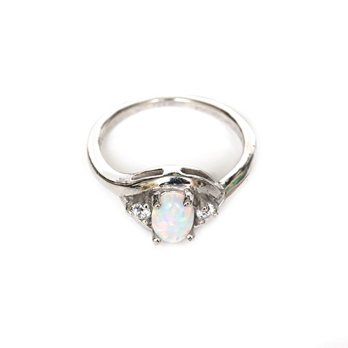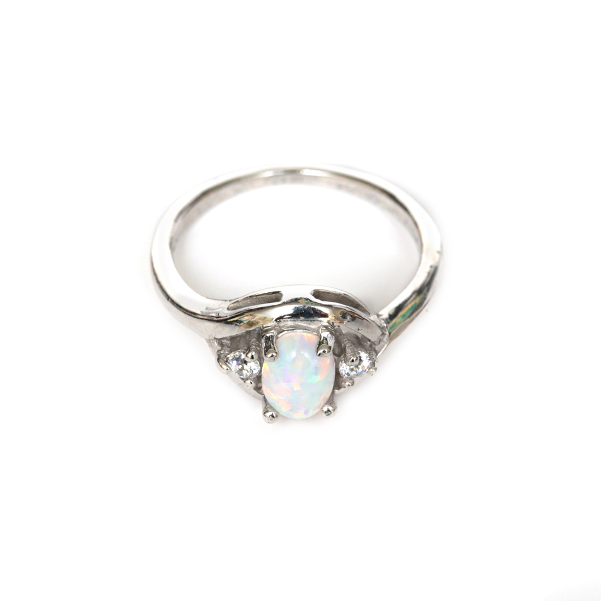 Pretty Gilson Opal & Cubic Ziriconia Ring In Sterling Silver.